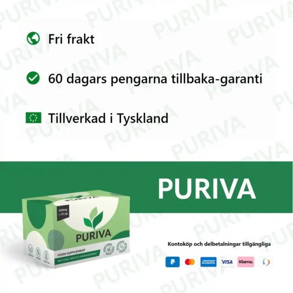 Puriva är ett kosttillskott i kapselform utvecklat för vuxna som vill stödja sin viktkontroll. Produkten är framtagen för att passa in i en balanserad livsstil och kan användas som en del av en daglig rutin. Kapslarna är veganska och tillverkade enligt etablerade kvalitetsstandarder.