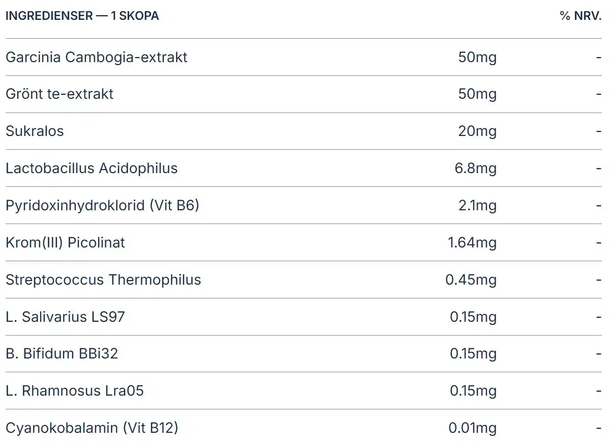 Trim IQ ingredienser inkluderar grönt te, garcinia cambogia, krom och probiotika. Formulan är 100 % vegansk, GMO-fri och inspirerad av naturen för att stödja viktkontroll.